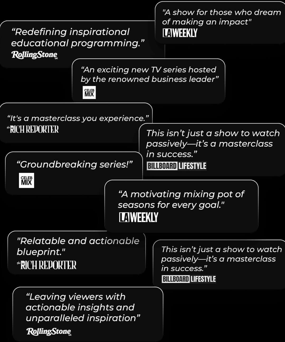 We believe that storytelling through TV is one of the most powerful ways to inspirereal change and leave a lasting impact.Every original production is crafted to spotlight essential causes and spark meaningful conversations, drawing in millions to participate, support, and take action. As the creative force behind today’s thriving brands, we turn entrepreneurs intoindustry icons. Inside Success Studio believes every entrepreneur has a unique story to share.