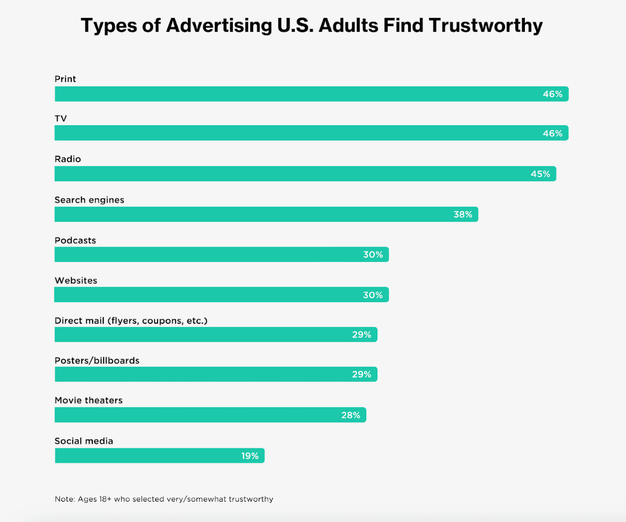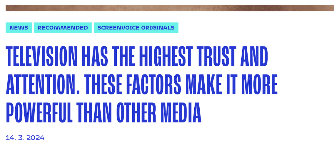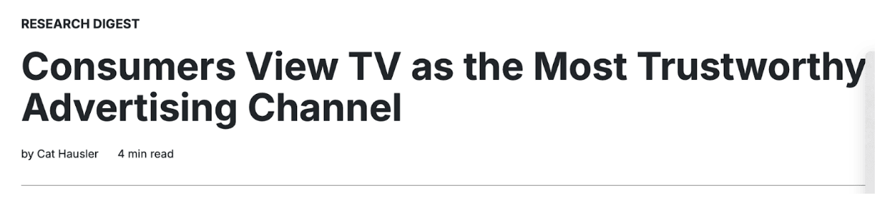 73% of consumers perceive brands or individuals featured on TV as more credible and trustworthy compared to other media channels (Source: Nielsen Media Trust Report).