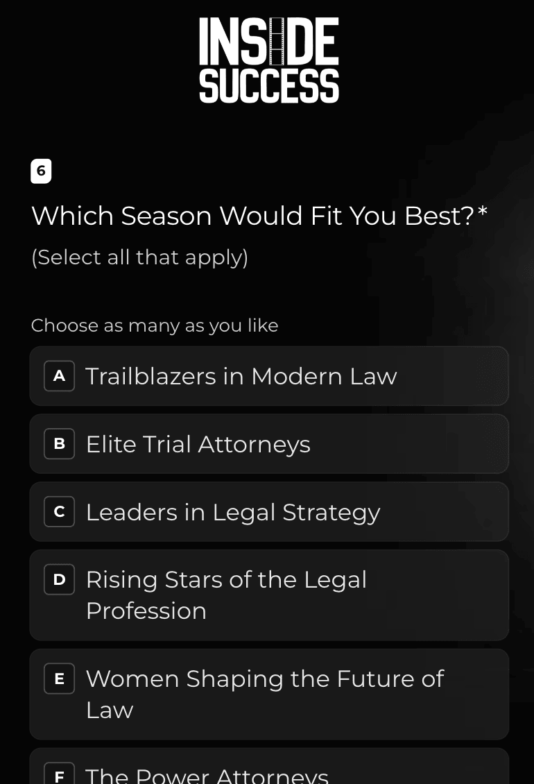 America’s Top Coaches is not open to everyone — it’s a curated platform for excellence. Each applicant is vetted to ensure that only high-caliber attorneys, firm founders, and legal professionals are featured. If accepted, you’ll join an elite group of peers representing the very best in American law — reinforcing both your own credibility and the prestige of the series.